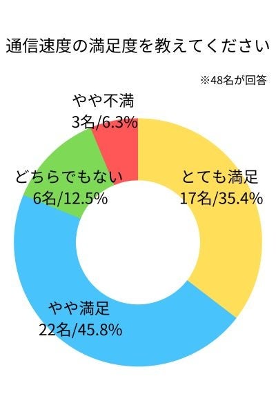 通信速度においても最も多い回答は「やや満足」で約46%でした。