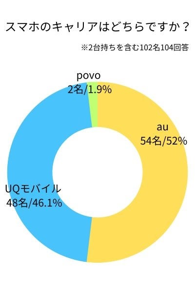 ・今回アンケートをとった全員(102名)がauをはじめとするKDDIのスマホを利用していた。