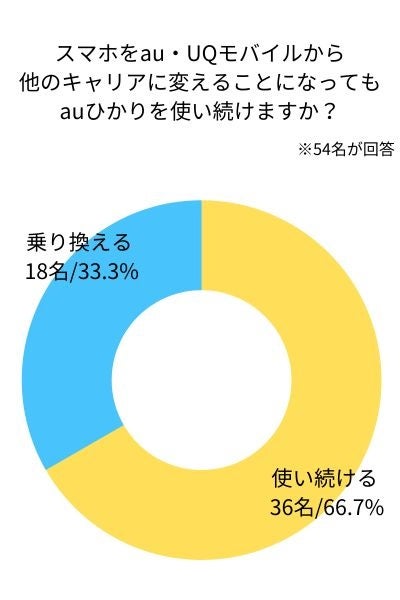 ・auとUQモバイルからスマホのキャリアを変更しても、auひかりを使い続けると回答した方は約67%だった。