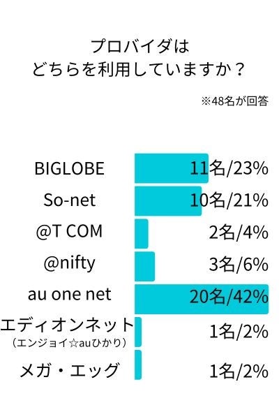 auひかりで最も多く利用されているプロバイダはau one netで、約42%という結果でした。