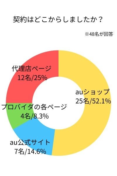 auひかりが最も多く契約された契約先はauショップで約52%でした。