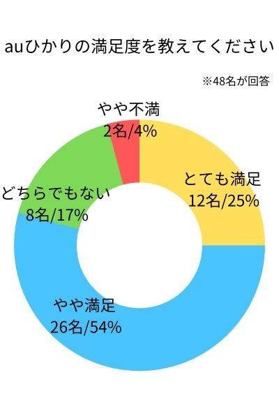 不満に感じる方は約4%しかおらず、auひかりの満足度の高さが分かります。
