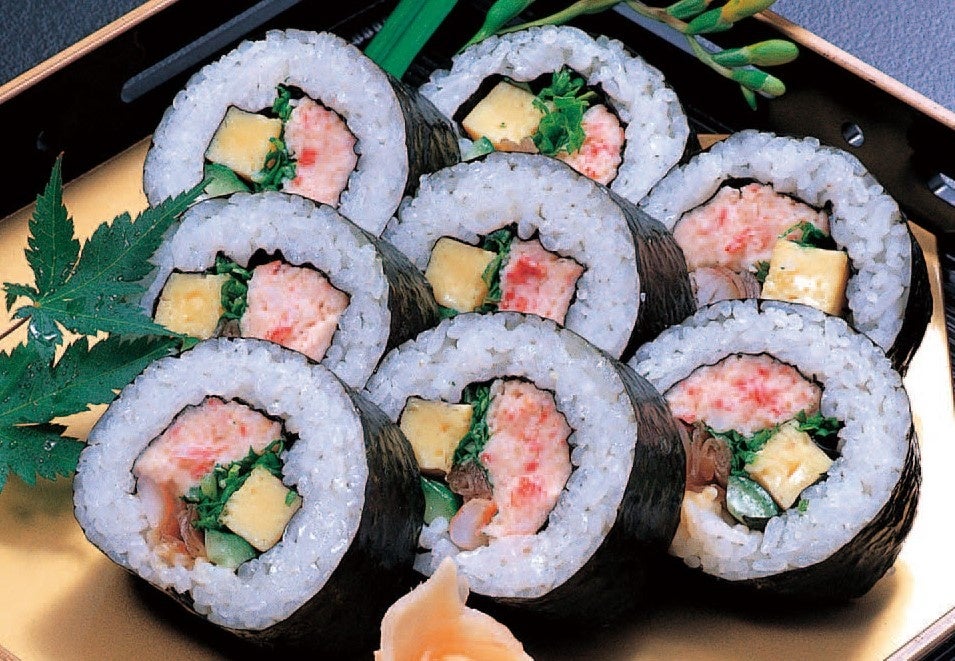 甲羅本店の職人が1本ごと丁寧に巻き上げたかに太巻き寿司はかに身をたっぷりと使用して旨みと食べ応えがあわさった味わいが楽しめます。