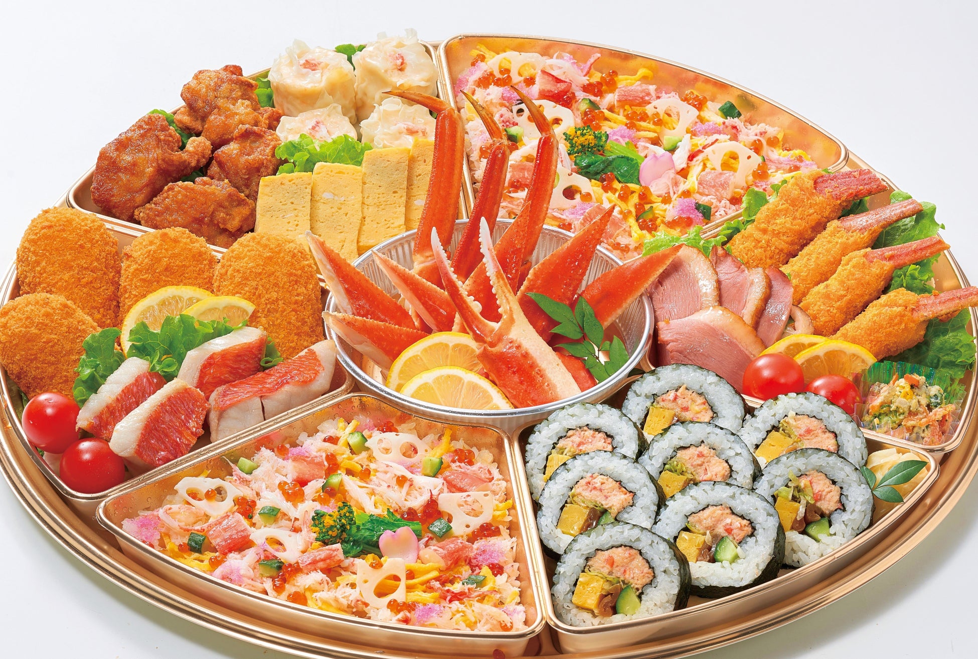 「かにクリームコロッケ」や「かに太巻き寿司」など家族で楽しめるメニューを取り揃えたオードブル