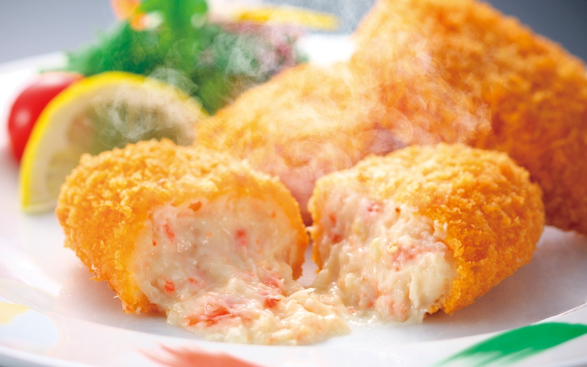 甲羅本店のかにクリームコロッケは子どもから大人まで幅広く親しまれる人気のメニューです。かにの風味にクリームのまろやかな味わいがクセになります。