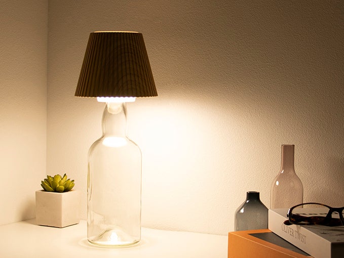 サステナブルな暮らしを照らす「ボトルライト」発売 お気に入りのガラスびんを 自分だけの照明スタンドに