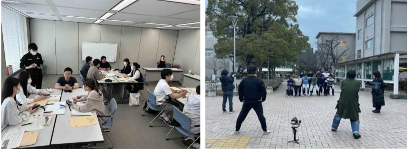 企画検討会の様子 → 撮影の様子(in 香川大学)