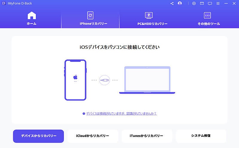 iPhoneから動画・ビデオを完全に削除してしまったが、さらにバックアップもない場合は一番困りますね。その時、Apple公式の復元方法は使えないからです。大切な動画を回復するために、ここでは「iMyFone D-Back」という強力かつ安全なiPhoneデータ復元ソフトの利用をおすすめします。バックアップがなくても削除した動画をiPhone本体から簡単に復元できます。さらに、操作は簡単で、ボタンを数回クリックするだけで消したデータを取り戻せるが、初心者でも手軽に利用できますよ。