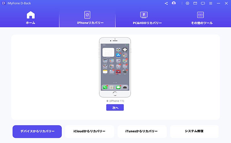 ステップ 1:D-Backをインストールして、起動したら、「デバイスからリカバリー」を選択します。