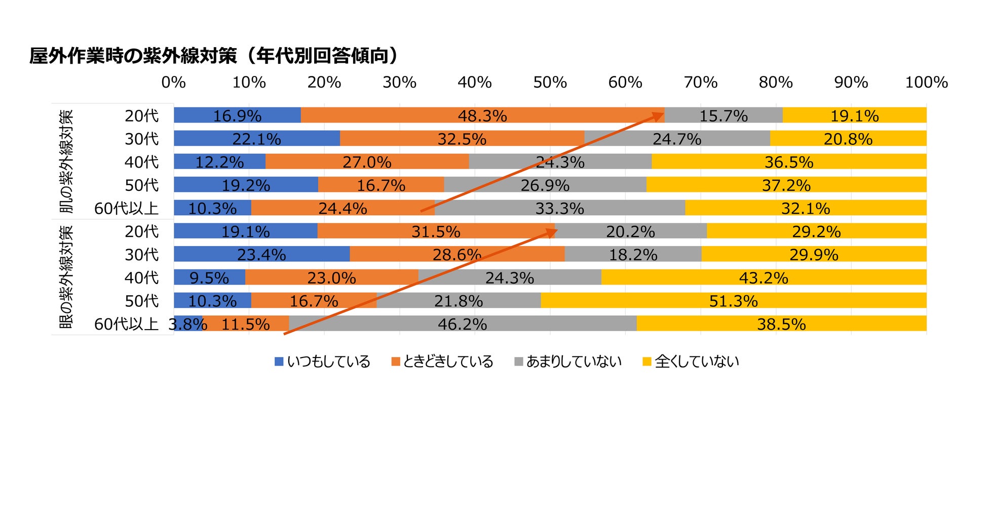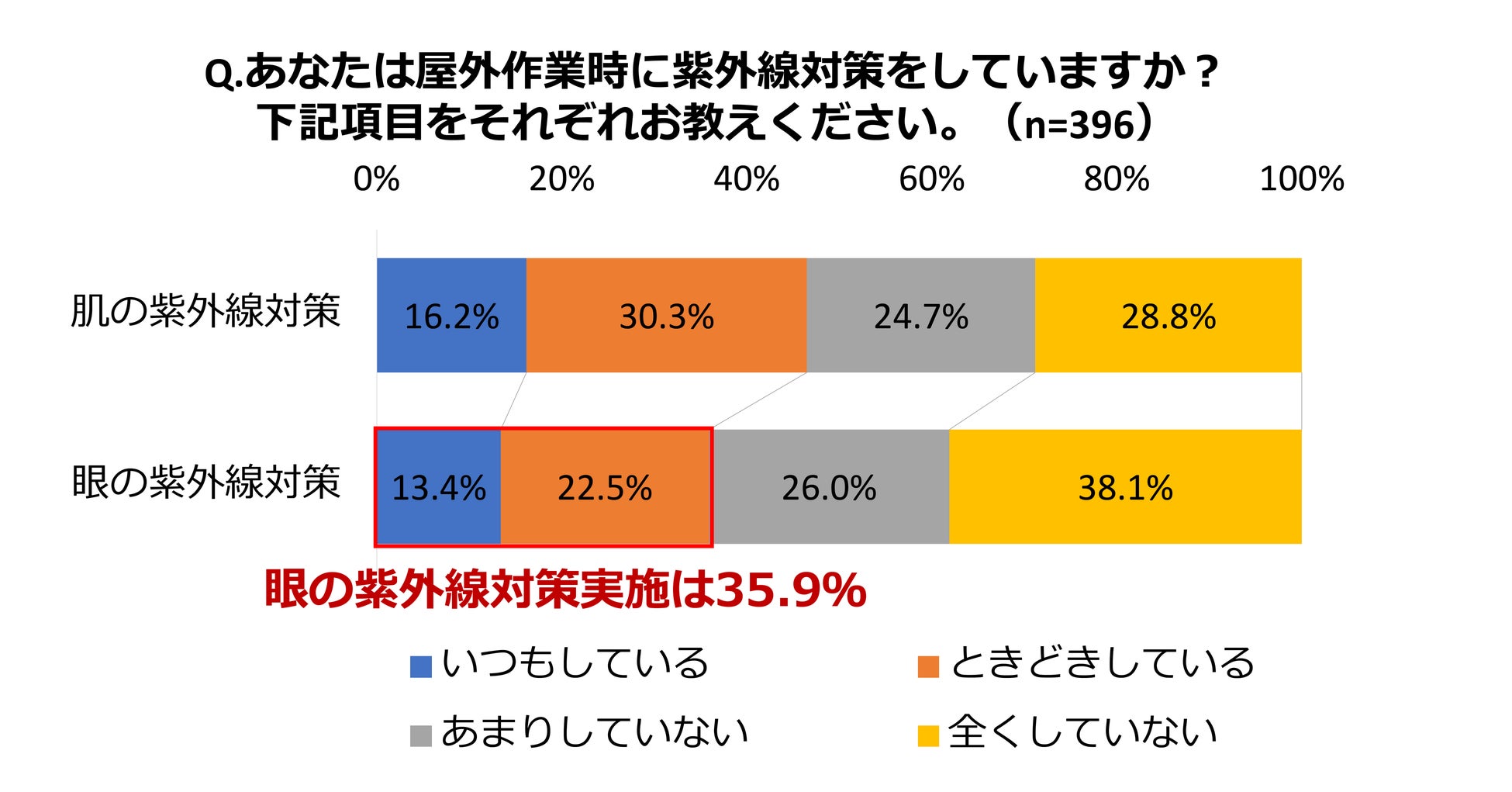 屋外作業者の46.5%が肌の紫外線対策を実施、一方で眼の紫外線対策実施は35.9%にとどまる