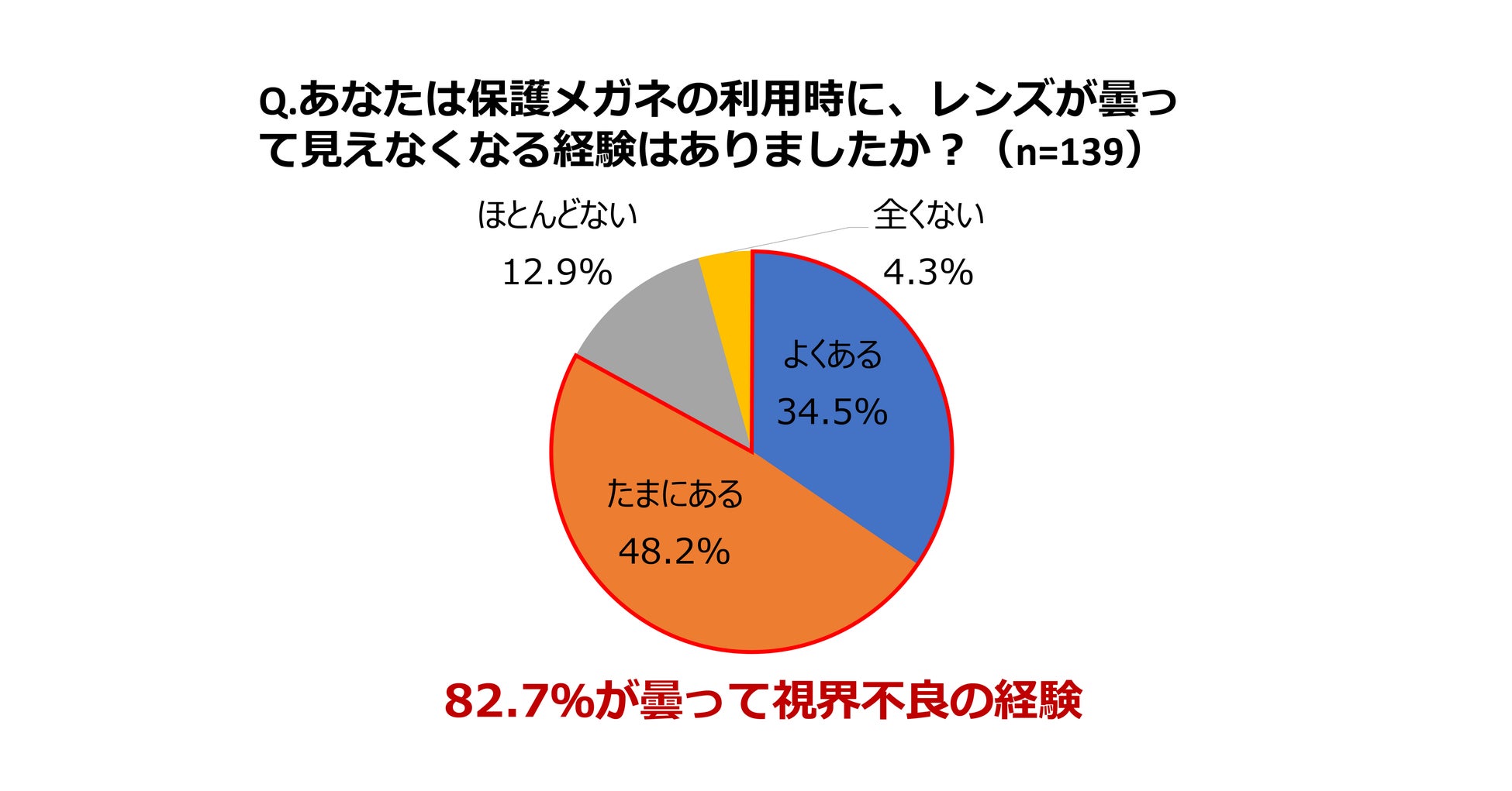 保護メガネ使用者の82.7%がレンズの曇りを経験。