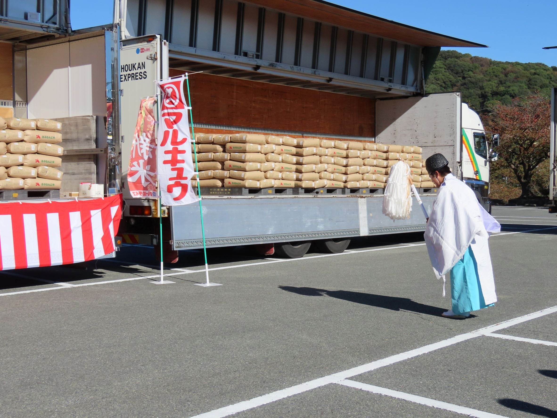 この度、株式会社丸久は2023年10月23日(月)大安に、防府市の防府天満宮にて『幸せますこしひかり』の今年とれた新米(玄米)の奉納式を執り行いました。