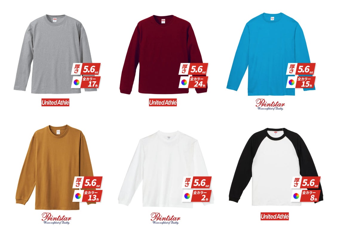 企業や学校のさまざまなイベント用アイテムとしても最適なオリジナルアパレル。今回は冬物として「ロングTシャツ」「パーカー」「スウェット」が新登場しました。