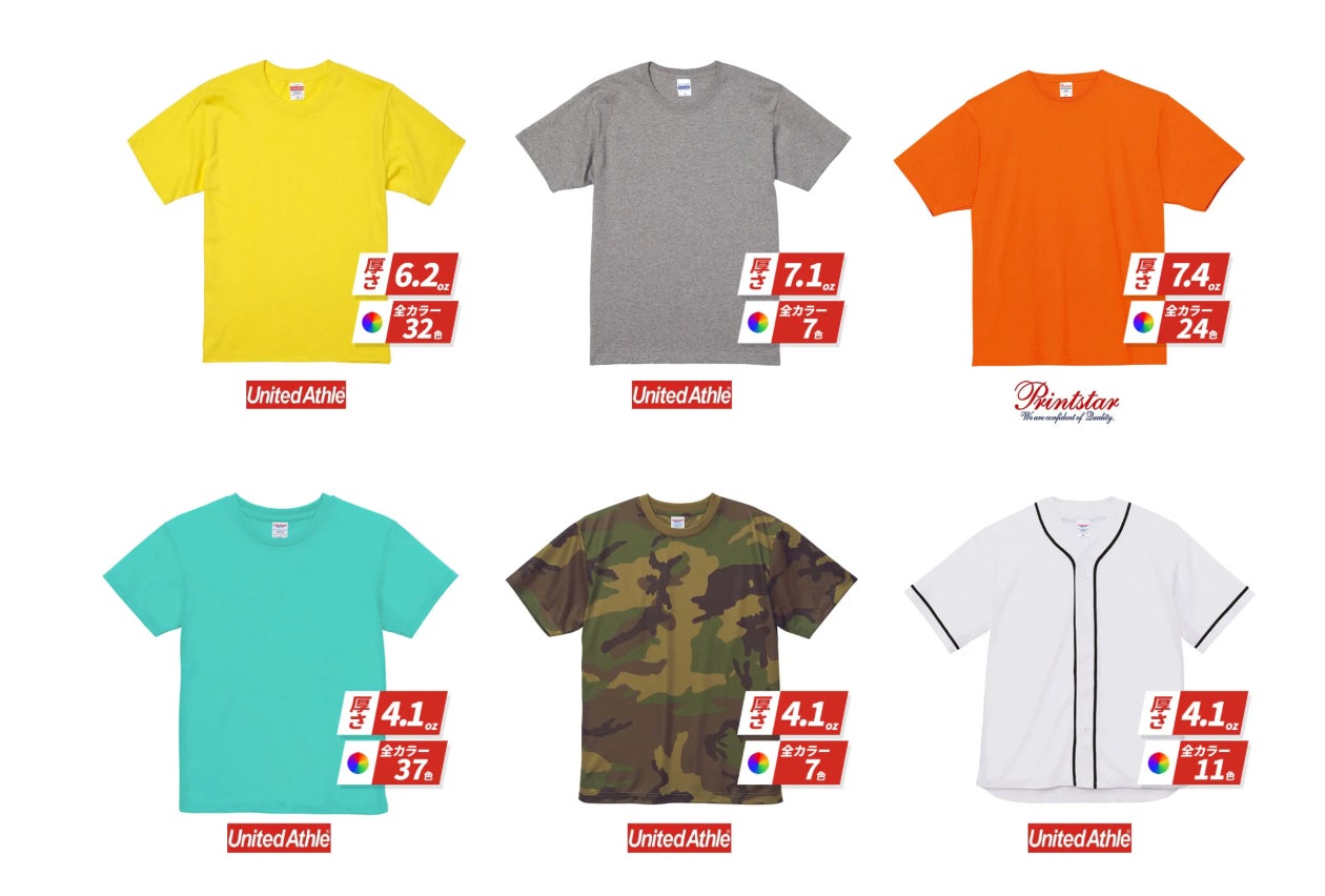 シンプルでありながら自由なデザインが楽しめるTシャツは、季節やシーンを選ばない定番アイテム。軽量で通気性に優れた素材を使用し、着心地も抜群です。お好きなロゴやイラストをフルカラーでプリント可能なので、カジュアルな日常使いやイベントのユニフォームとしても大活躍。コットンTシャツとドライTシャツ合わせて全23種類をご用意。