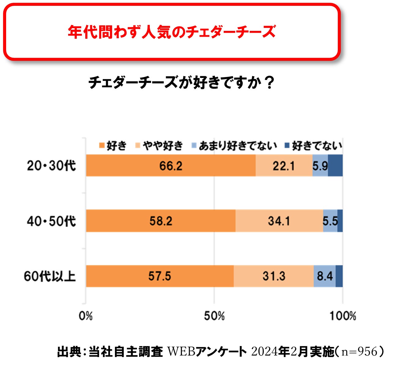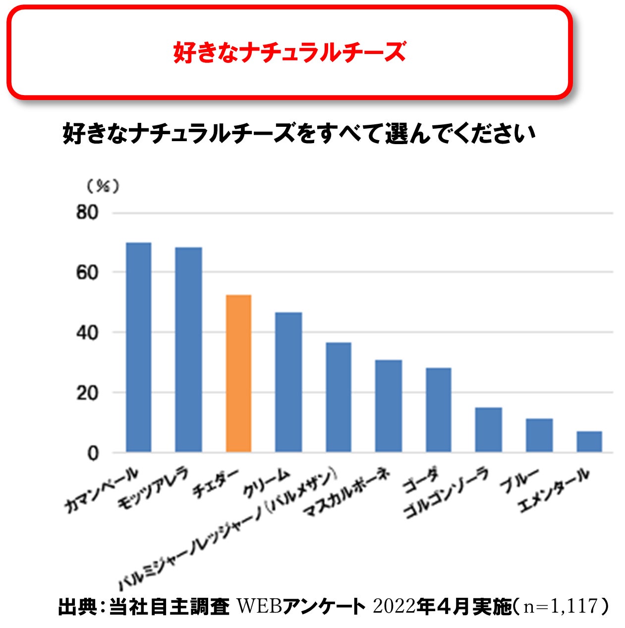 今回、チェダーチーズの味が楽しめる「なめらか チータラ」を発売いたします。チェダーチーズは、好きなチーズとしてもよくあげられる人気のチーズです。「なめらか チータラ」の主な購買層は40代以上ですが、チェダーチーズは、世代問わず人気ですので、若年層のお客様にもなじみやすいフレーバーとなっています。また、「チータラ」として食べてみたいチーズの種類について調査を行ったところ、「チェダーチーズ」は上位にあげられています。人気かつ食べてみたい「チータラ」としてチェダーチーズを採用いたしました。