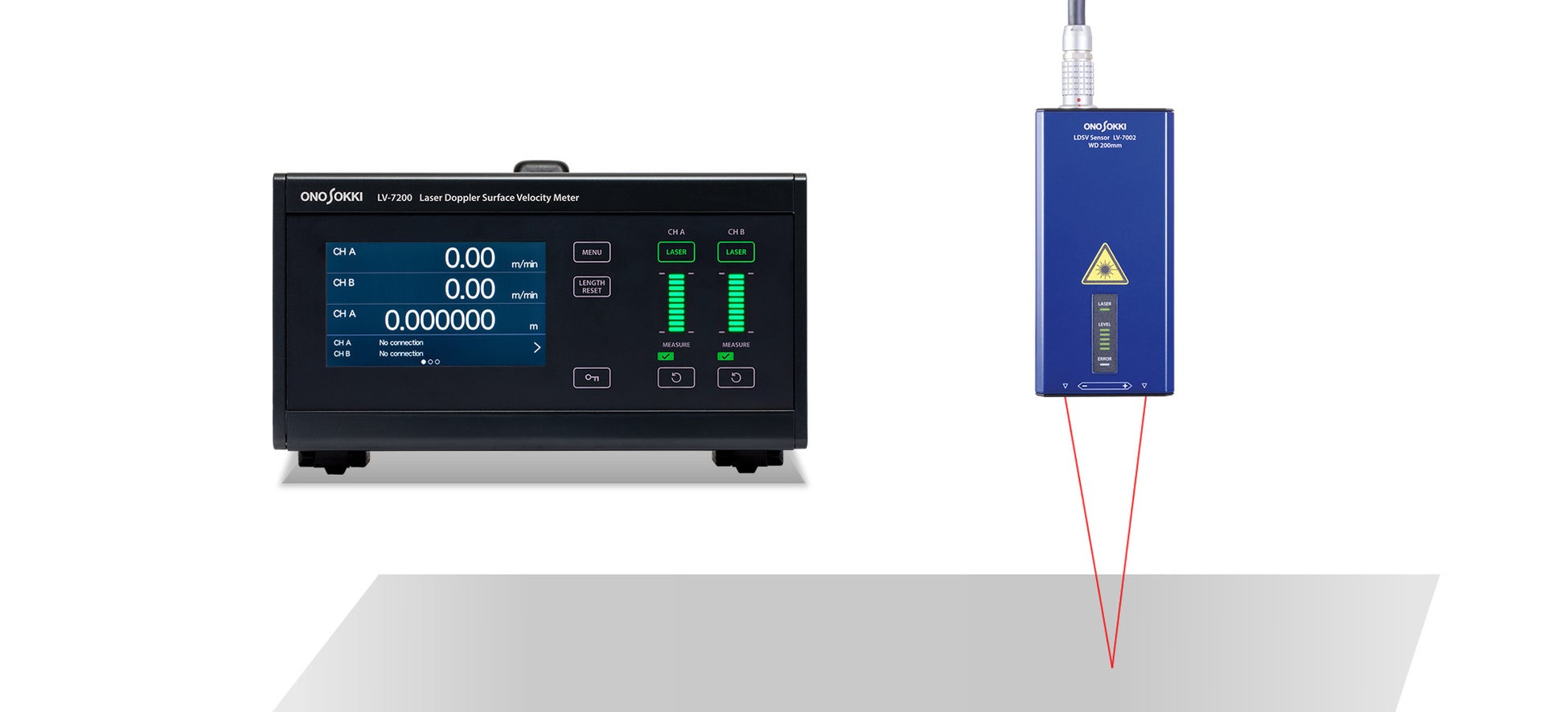 移動物体、回転体の速度や速度ムラ、移動距離‧長さを、非接触で検出する高感度‧高応答の計測器。モーターの回転軸などにおいて、ねじり振動が原因で軸の破損や振動騒音などの問題を引き起こすことがある。本製品は、レーザー光をモーター軸に照射し、このねじり振動を非接触で測定することが可能。
