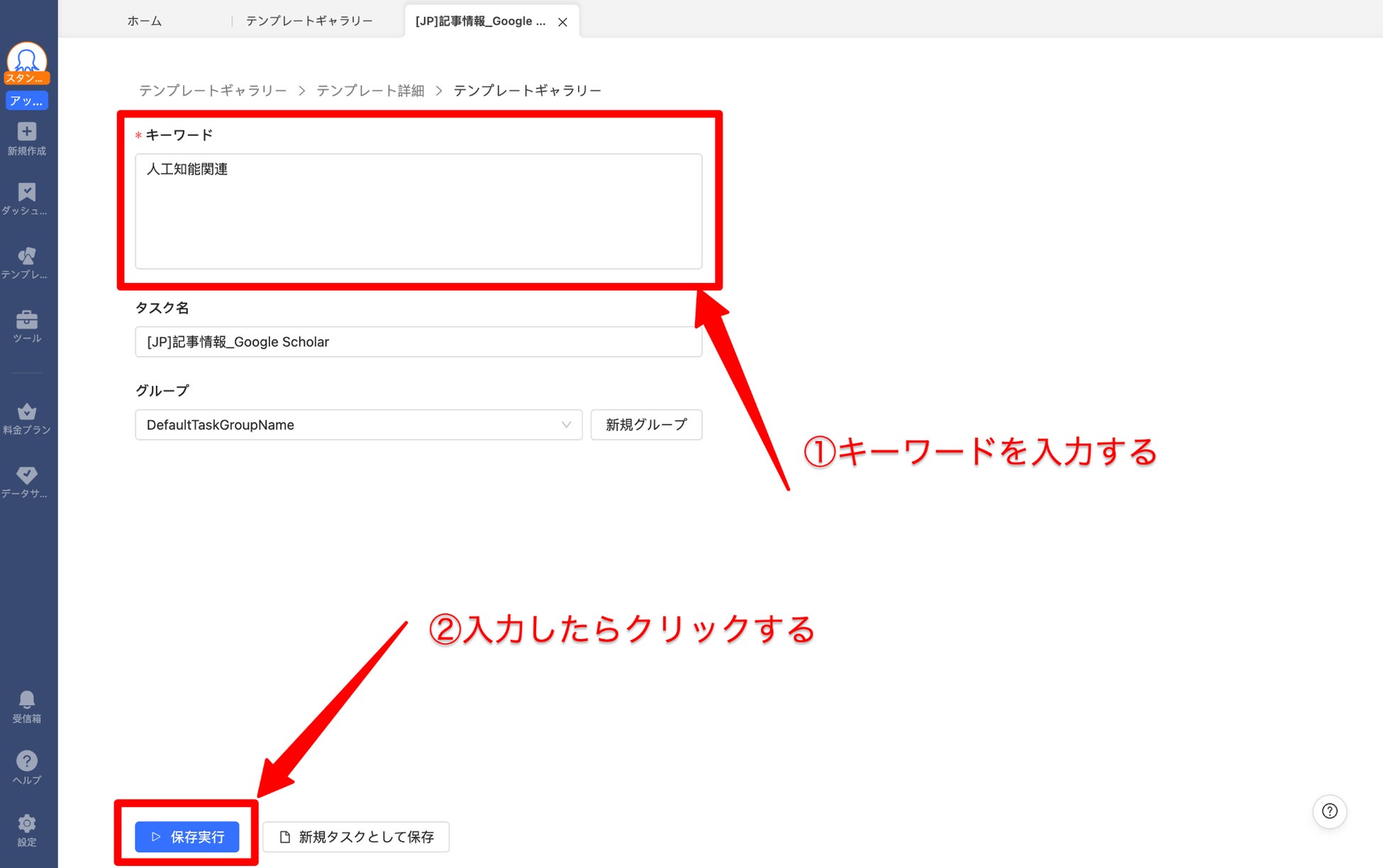 Octoparseのウェブスクレイピングテンプレートを使用して、検索ボックスに特定のキーワードや著者名を入力します。これにより、関連する学術論文を検索できます。
