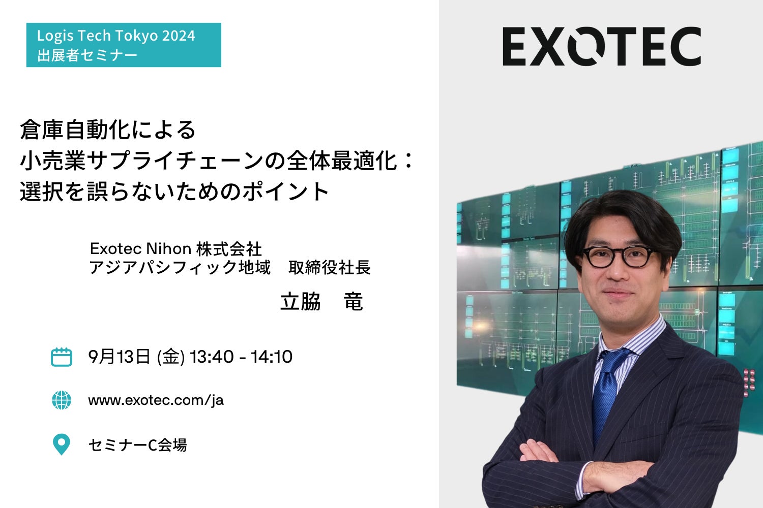 Exotec SAS(本社フランス、クロワ市CEO ロマン・ムラン)の 100%子会社である Exotec Nihon 株式会社(東京都港区 取締役社長 立脇竜、以下 Exotec)は、2024年9月10日(火)~13日(金)に、東京ビッグサイトにて開催される国際物流総合展2024に出展することをお知らせします。