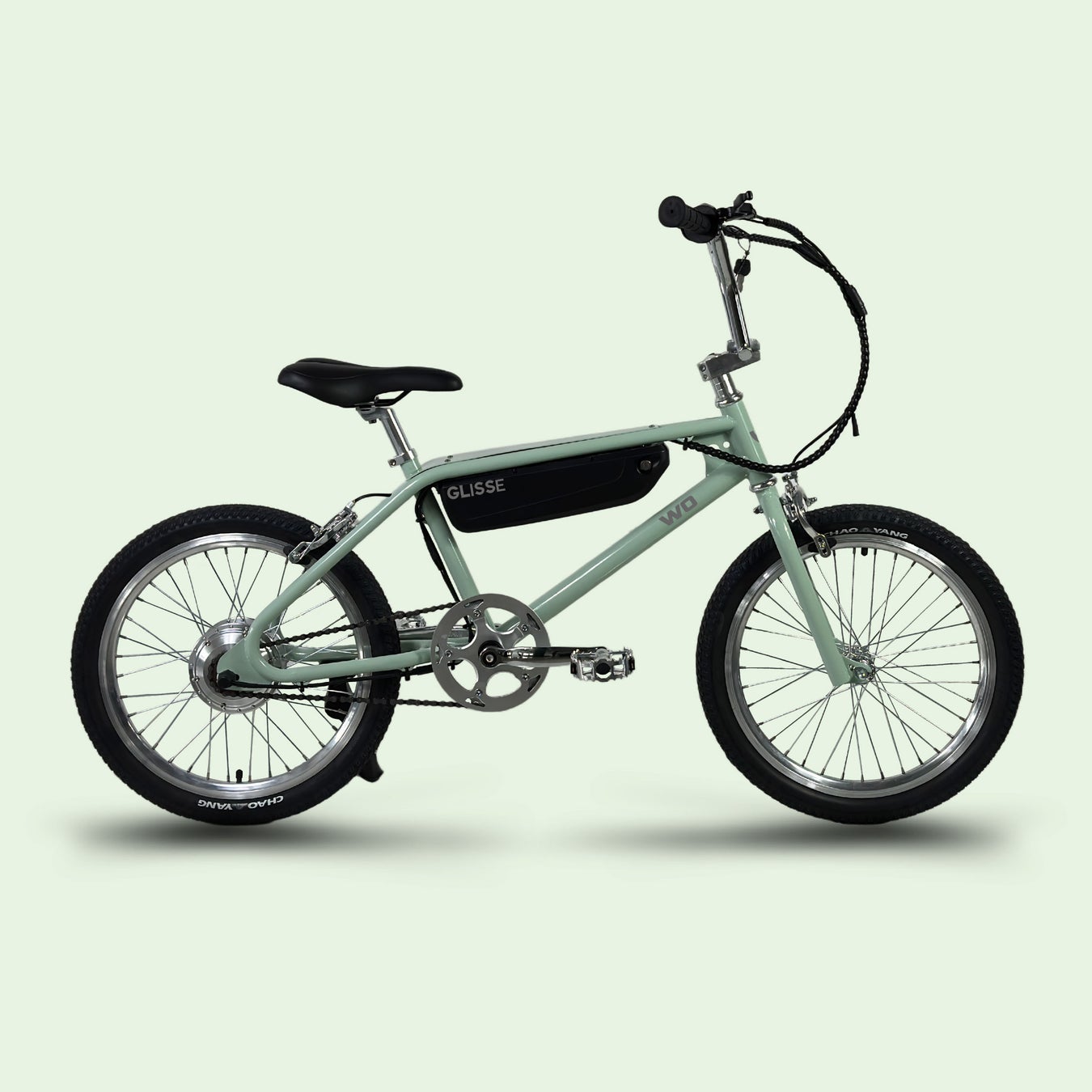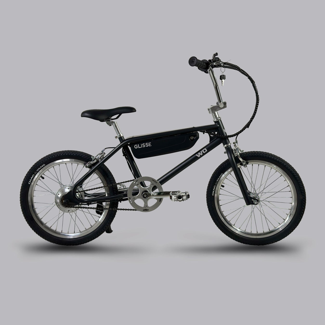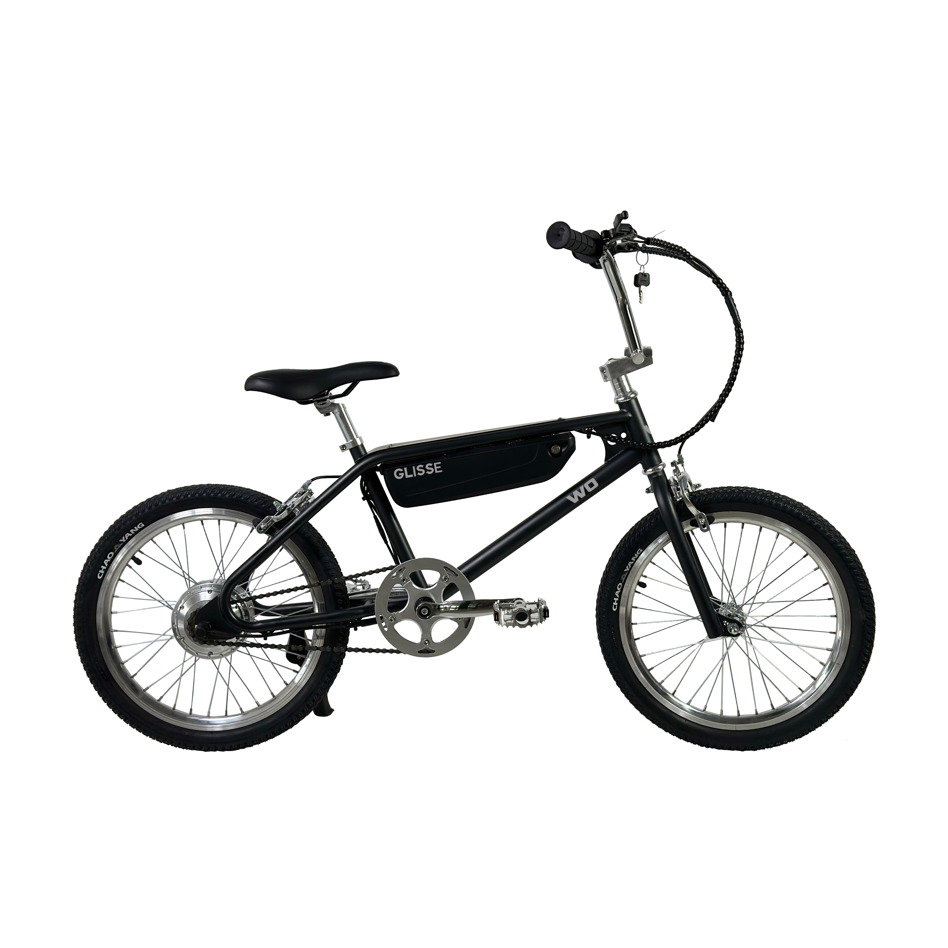 「GLISSE」はシンプルな20インチのBMXフレームをベースに、36V 13Ahのバッテリーと250Wのモーターを搭載した、無駄を削ぎ落とし、洗練されたデザインと機能性を持つ電動アシスト自転車です。