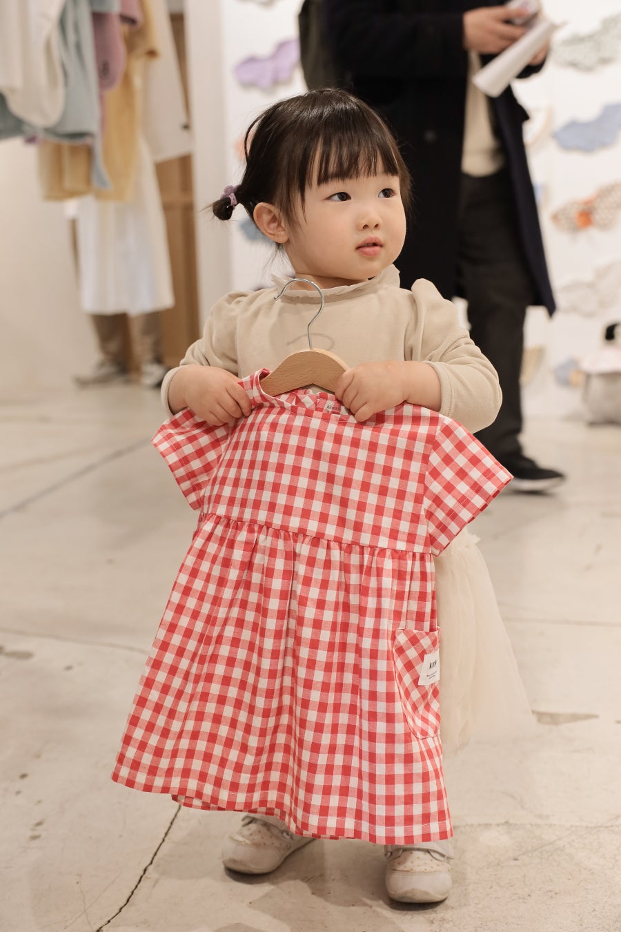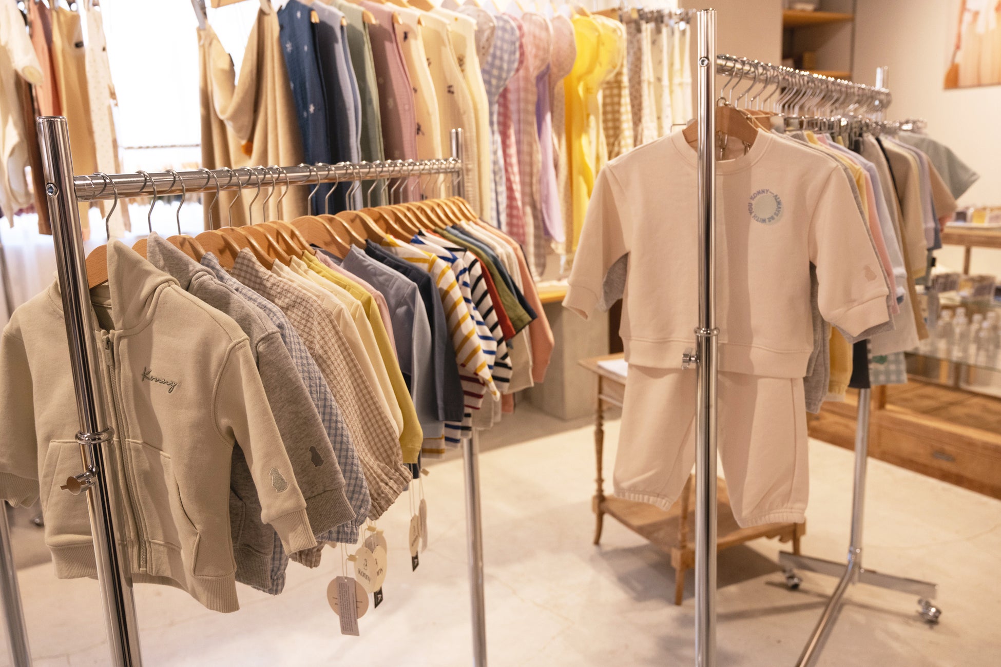 お出かけや旅行シーンに向けたきょうだいで楽しめるリンクコーデコレクションや、水着・フードタオルなどのラインナップも注目を集めました。さらに、前回の展示会でも好評を博した大人気「コニースタイ」のスタイウォールも再登場し、多くの来場者が記念写真を撮影する姿が見られました。