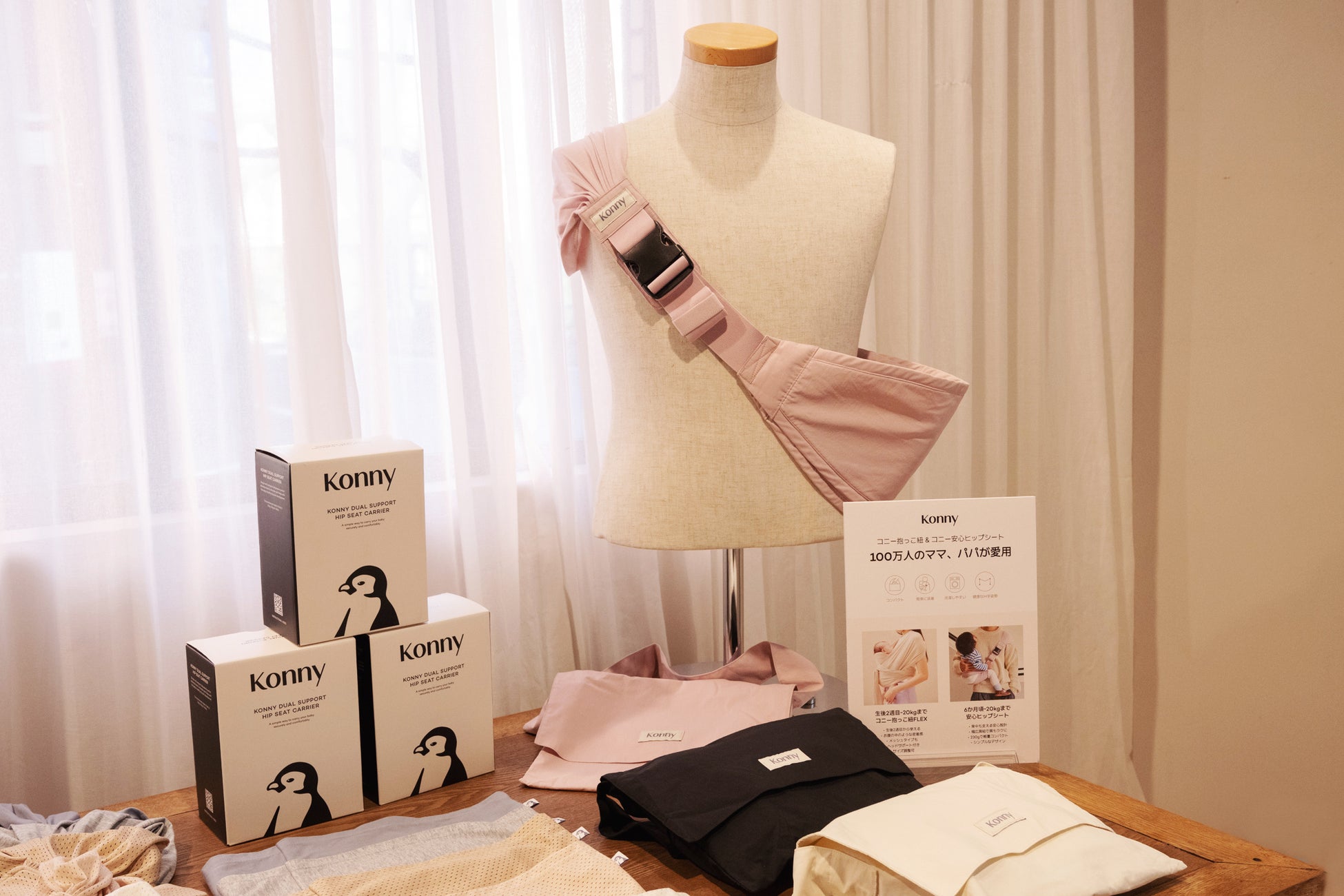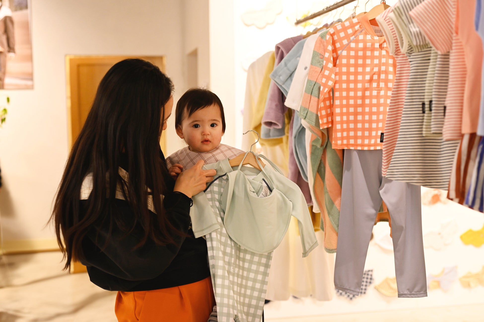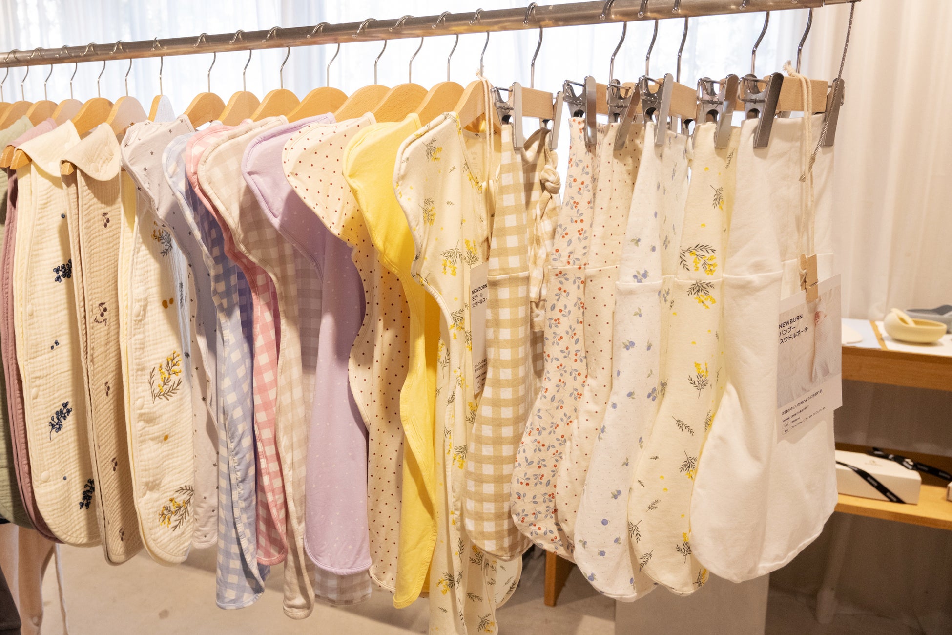 会場では、抱っこ紐やヒップシートの試着体験を提供したほか、新生児向けのベビー服、乳幼児突然死症候群(SIDS)や窒息リスク軽減に注目が集まるスワドル類をより丁寧にご紹介。また、保育園・幼稚園での着用に適したデザインと着心地を兼ね備えたベビー服も展示しました。