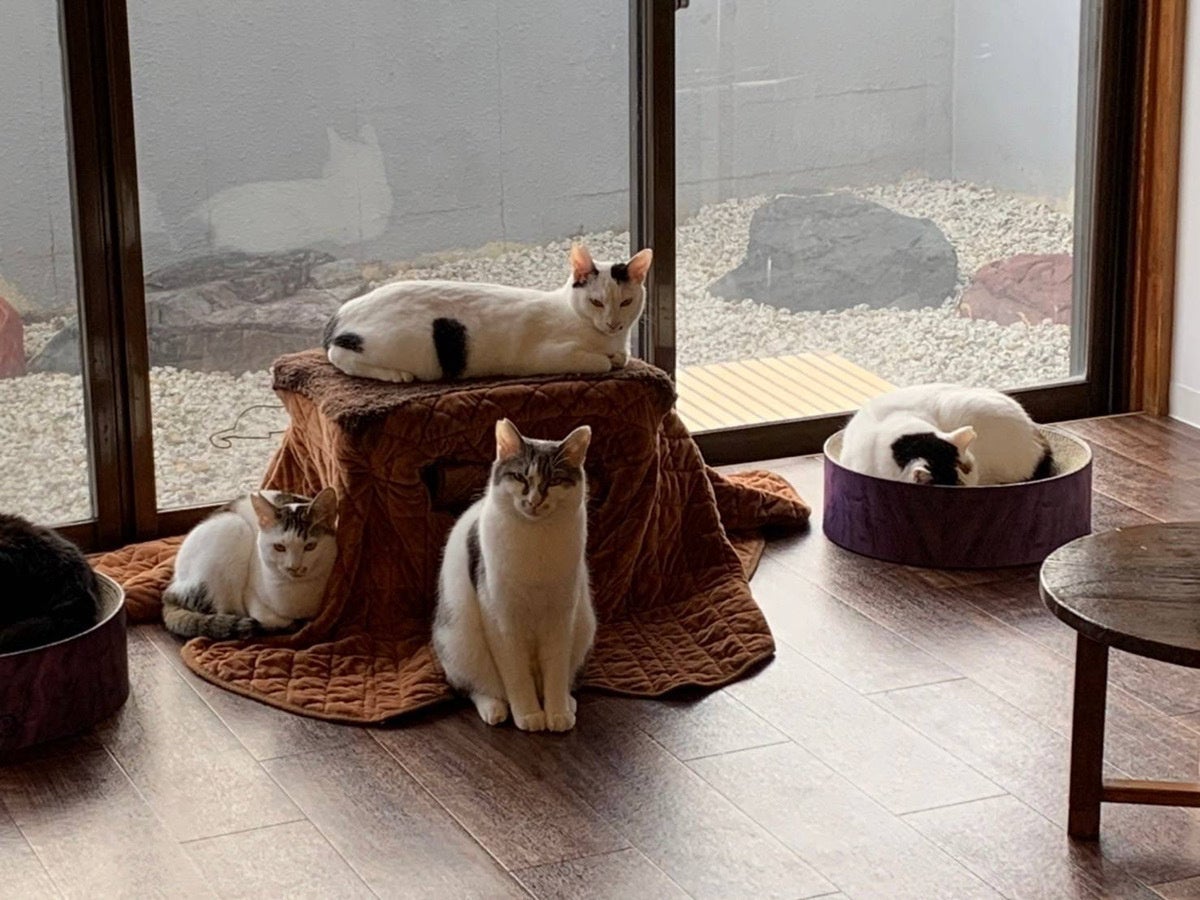 猫影にいる猫は、保護猫です。猫達の幸せな居場所であり、お客様にとっても特別な場所で有り続けたいと考えています。