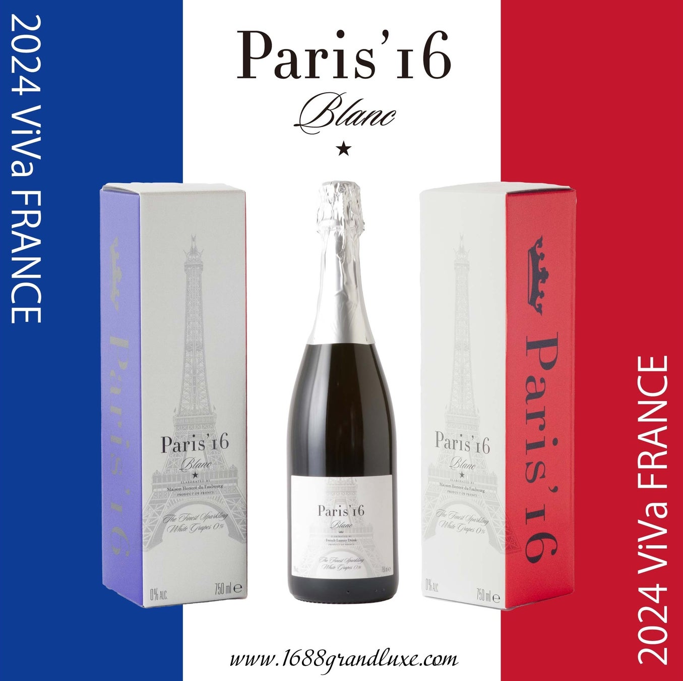 1688 Grand Rosé,1688 Grand Blancの姉妹商品として誕生したノンアルコール・スパークリングです。エッフェル塔が一番美しく望めるセーヌ右岸のParis’16区”Seiziéme”(セズィエーム)には、かつてPassy(パッシー)と呼ばれる村があり、そこで修道士たちがワインのための葡萄を栽培していたと言われています。それにちなみ、”Paris’16”(パリ・セズィエーム)と名付けました。
