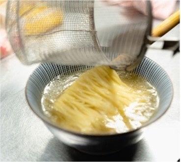 ☆麺☆ 美しい麺線を描く細麺は灯花スープのためだけに開発した特注ストレート麺