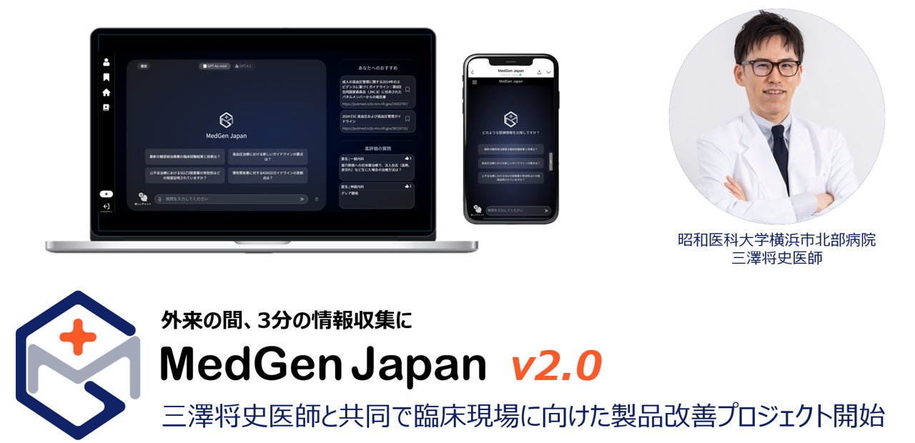 【外来の間3分の情報収集に】医師のためのAIアシスタント「MedGen Japan」回答力・速度・医学用語の識別精度を大幅向上、昭和医科大横浜市北部病院 三澤将史医師とさらなる製品向上プロジェクト開始