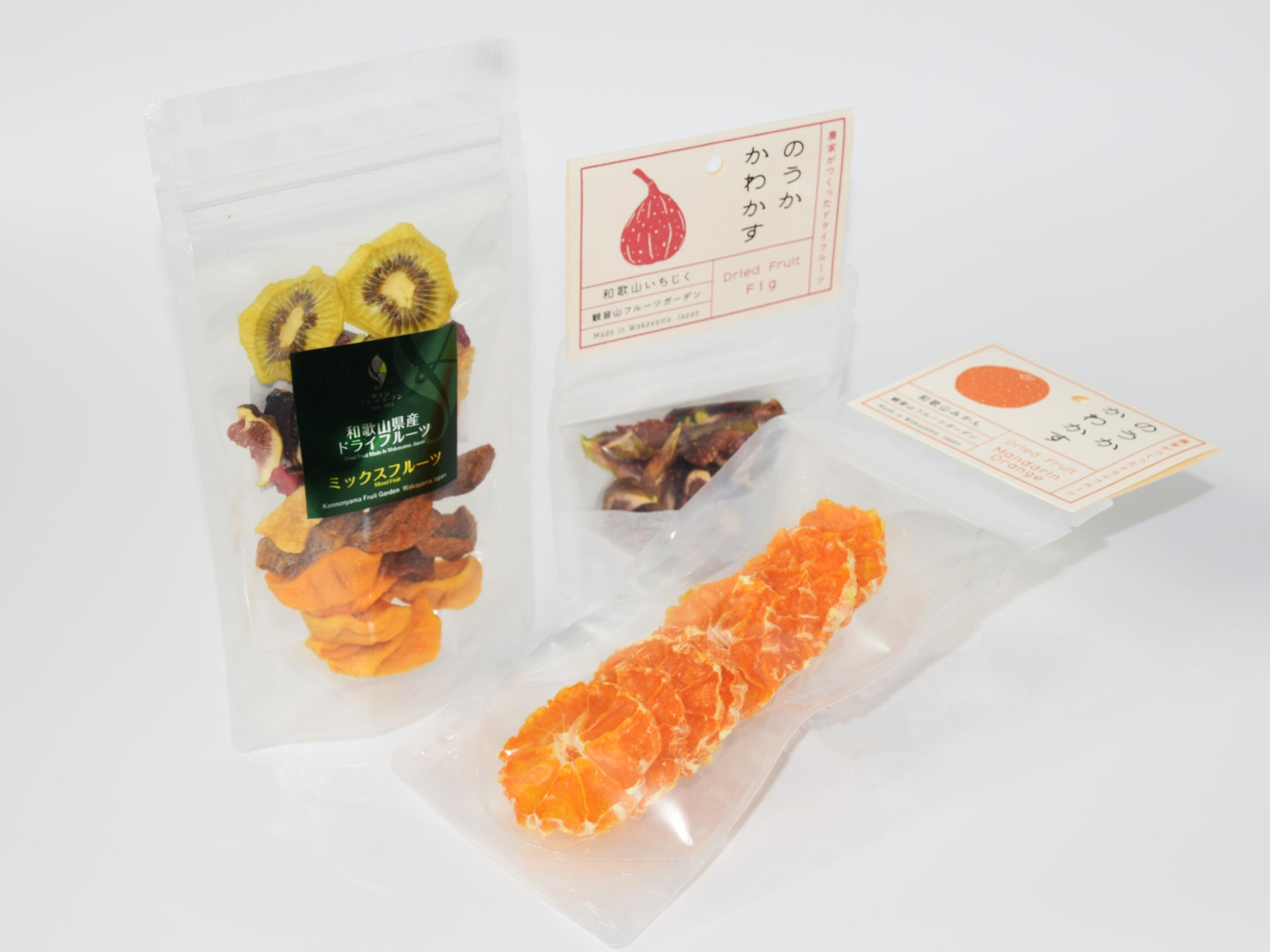 数種類のみかんをはじめとして、キウイや八朔は和歌山県から。イチゴは北海道産を使用。