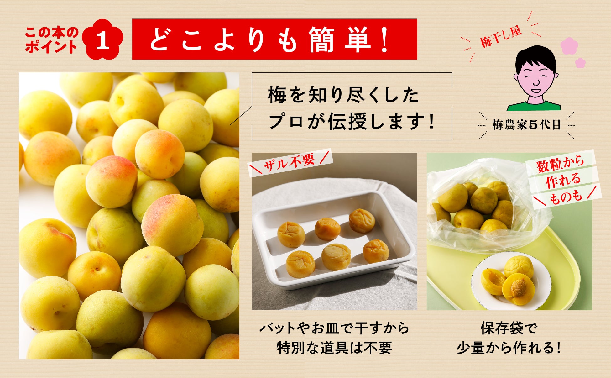 日本の伝統食・梅を次世代につなぐ「梅ボーイズ」リーダー山本将志郎さんが、梅仕事についてどこよりも簡単に、どこよりも丁寧に紹介! 梅農家ならではの梅の食べ方やレシピも掲載