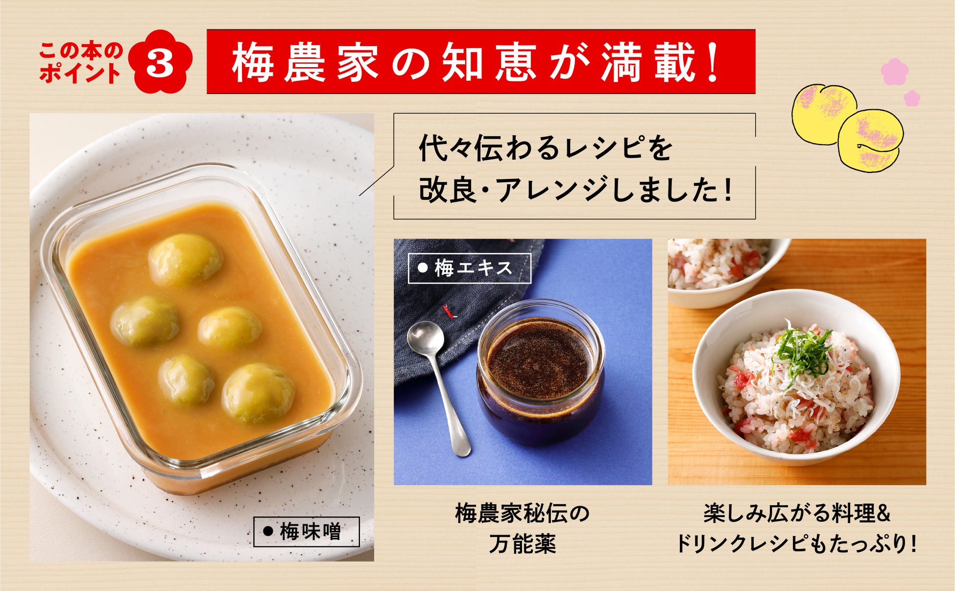 代々伝わるレシピに、家庭で手軽に作りやすいよう改良、工夫を加えました。梅農家ならでは梅の食べ方や料理、ドリンクのレシピも惜しみなく公開。
