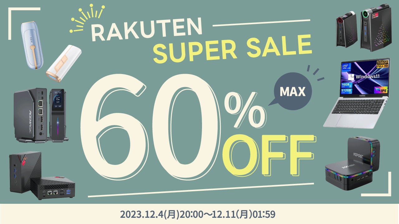 【楽天スーパーSALE 20%~60%OFF】楽天市場今年最後のビッグセール開催!ミニPC、家庭用脱毛器人気製品大特価!