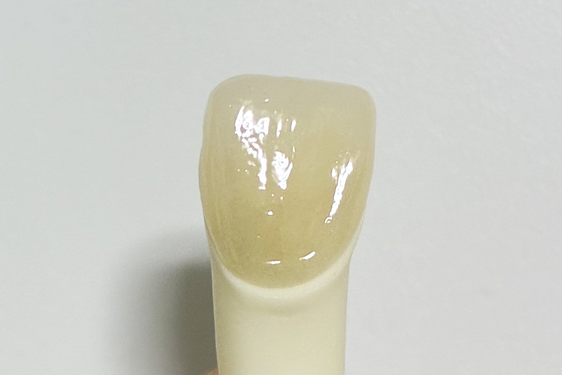 これらのニーズに応えるべく、私たちは「コスメティースC」を開発しました。コスメティースCは、透明な膜を歯の表面に形成し、自然な光沢とツヤ感を与えることに特化した歯の化粧品です。さらに、使用中には歯の表面を膜で保護し、食事や飲み物からの汚れの付着を防ぐホワイトキープ機能も備えています。