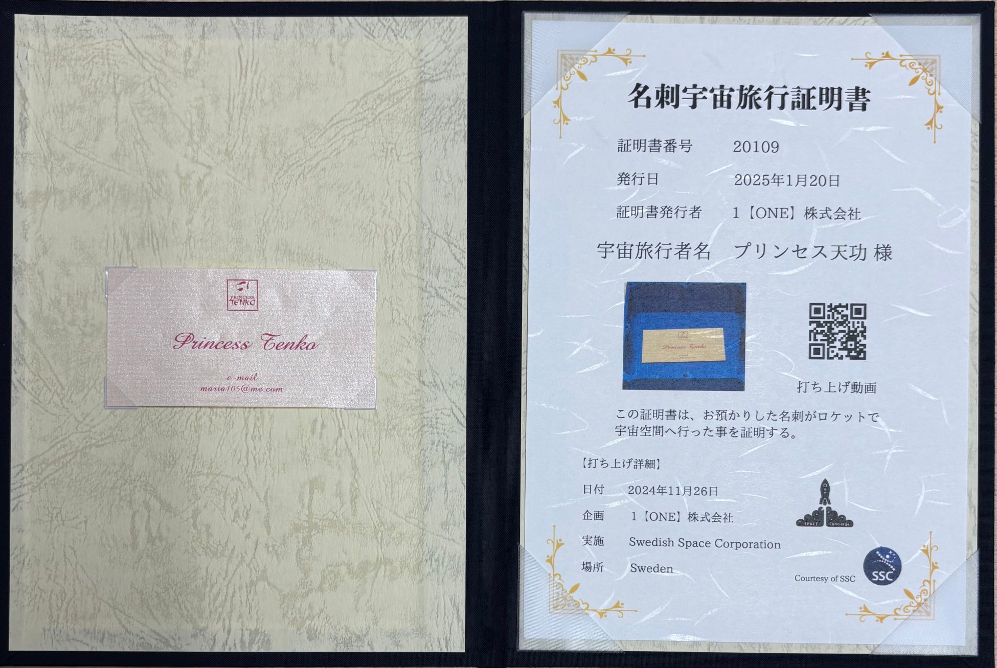 お客様の名刺を宇宙へ送り、帰還後に公式証明書とともにお届けするこのサービスは、特別な記念や贈り物として多くの方にご利用いただいております。