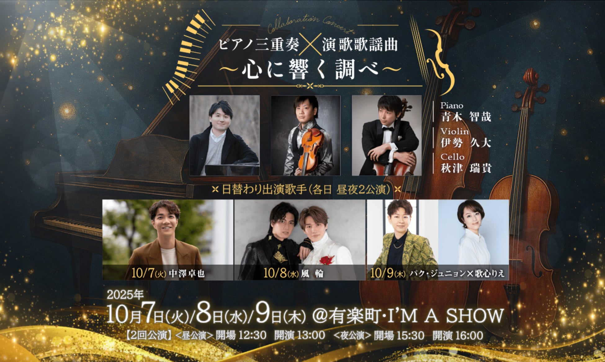『ピアノ三重奏×演歌歌謡曲〜心に響く調べ〜』が、2025年10月7日(火)から9日(木)の3日間