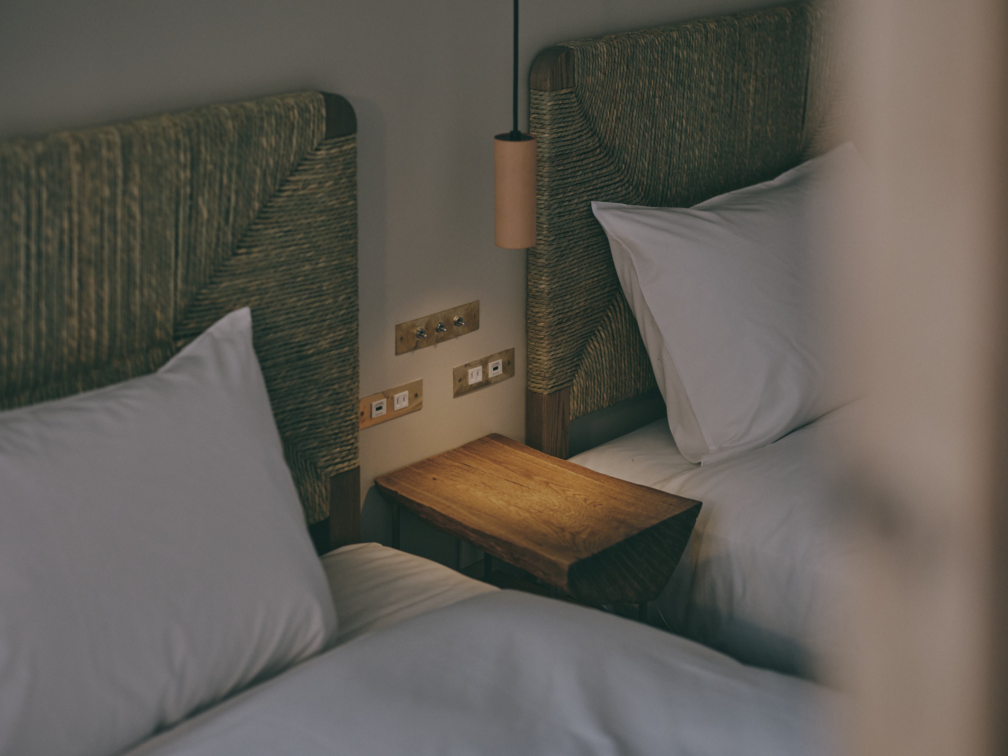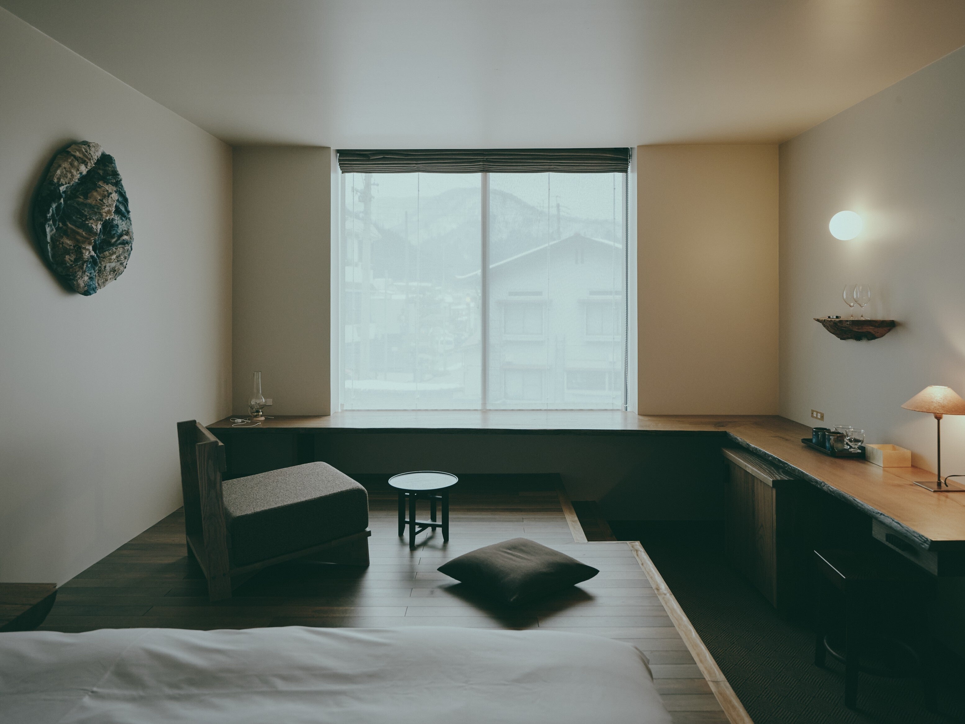 全10室の客室は、古民家に残る太い梁や土壁の質感を受け継ぎながら、雪国の静けさとともに、土地の時間に身を委ねる空間として整えられています。室内には、土や水、祈りの記憶をモチーフにした全室異なるアートが配され、滞在するたびに異なる野沢の気配と向き合うことができます。野沢の湧水や地酒、クラフトジンを楽しみながら、村の自然と人が交わる静かな時間をお過ごしいただけます。