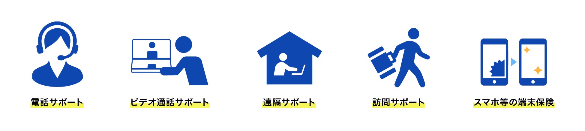 ・遠隔サポート:専門スタッフが遠隔(リモート)でスマホやPCの操作をサポートしトラブルを解決いたします。