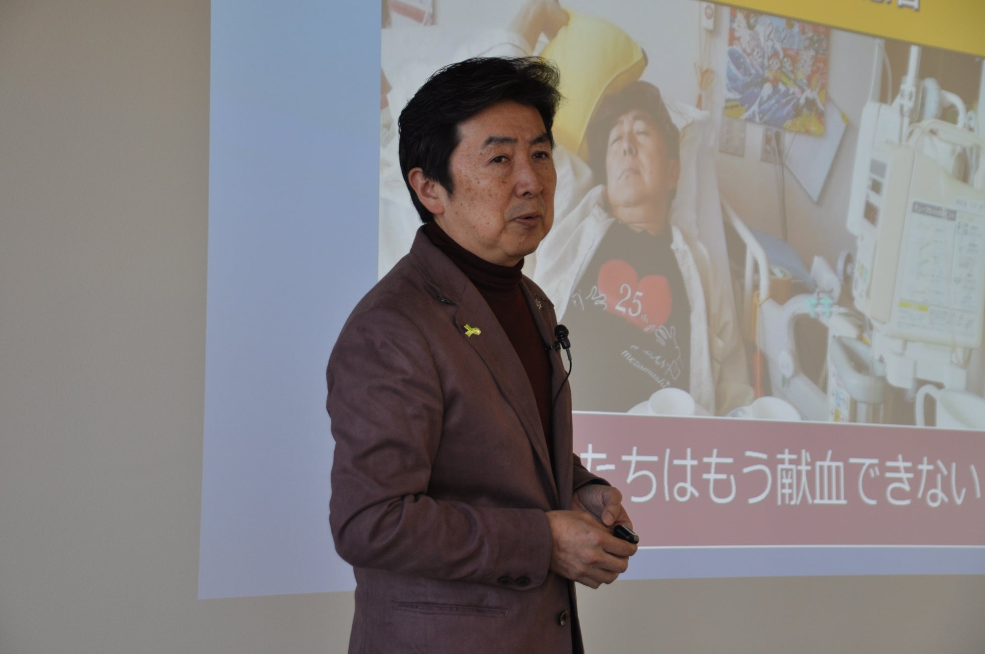 セミナーの中で笠井さんは、闘病中に「輸血」によって当時悩まされていた頭痛の症状が治り、入院中のQOL(生活の質・生命の質)が上がった経験を紹介し、QOLが上がることにより、がんと向き合うことができて、頑張ろうという気持ちとなり、多くの人の命が救われていることを伝えました。