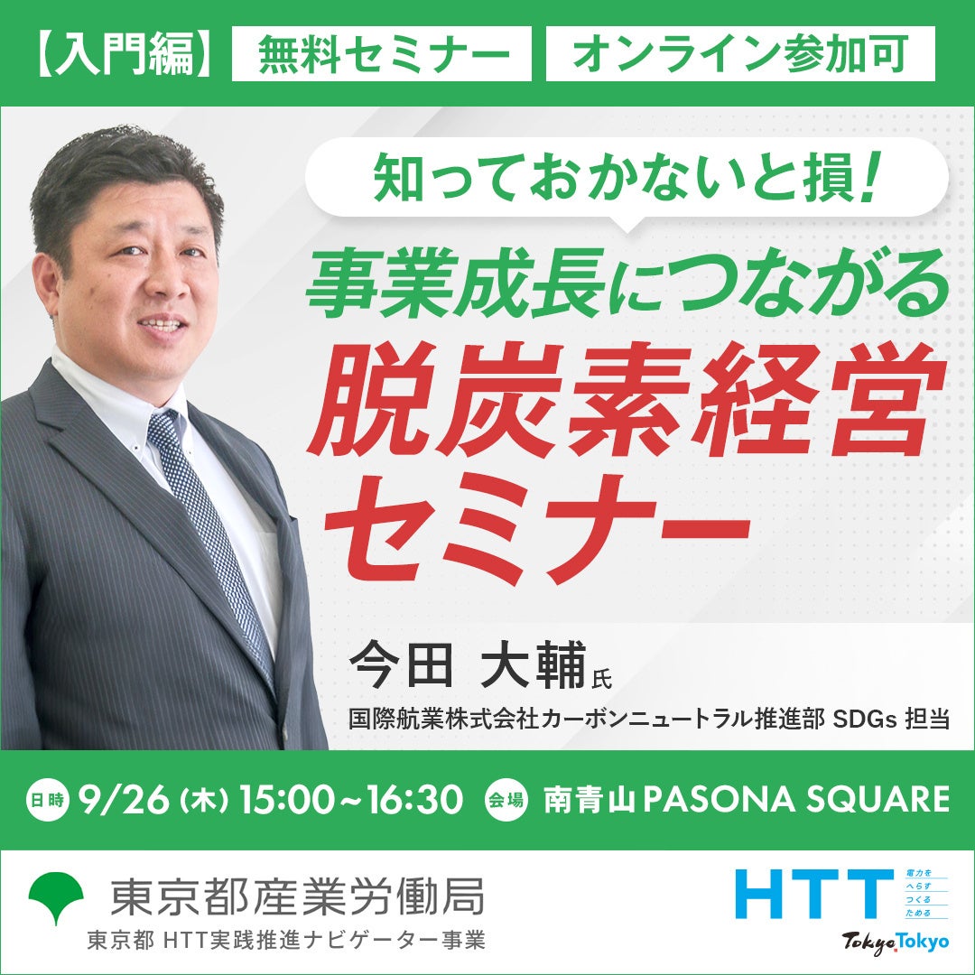【無料セミナー】脱炭素経営は事業成長にどう活かせるのか。自社の経営に置き換えて考えてみませんか?東京都産業労働局 9月26日開催