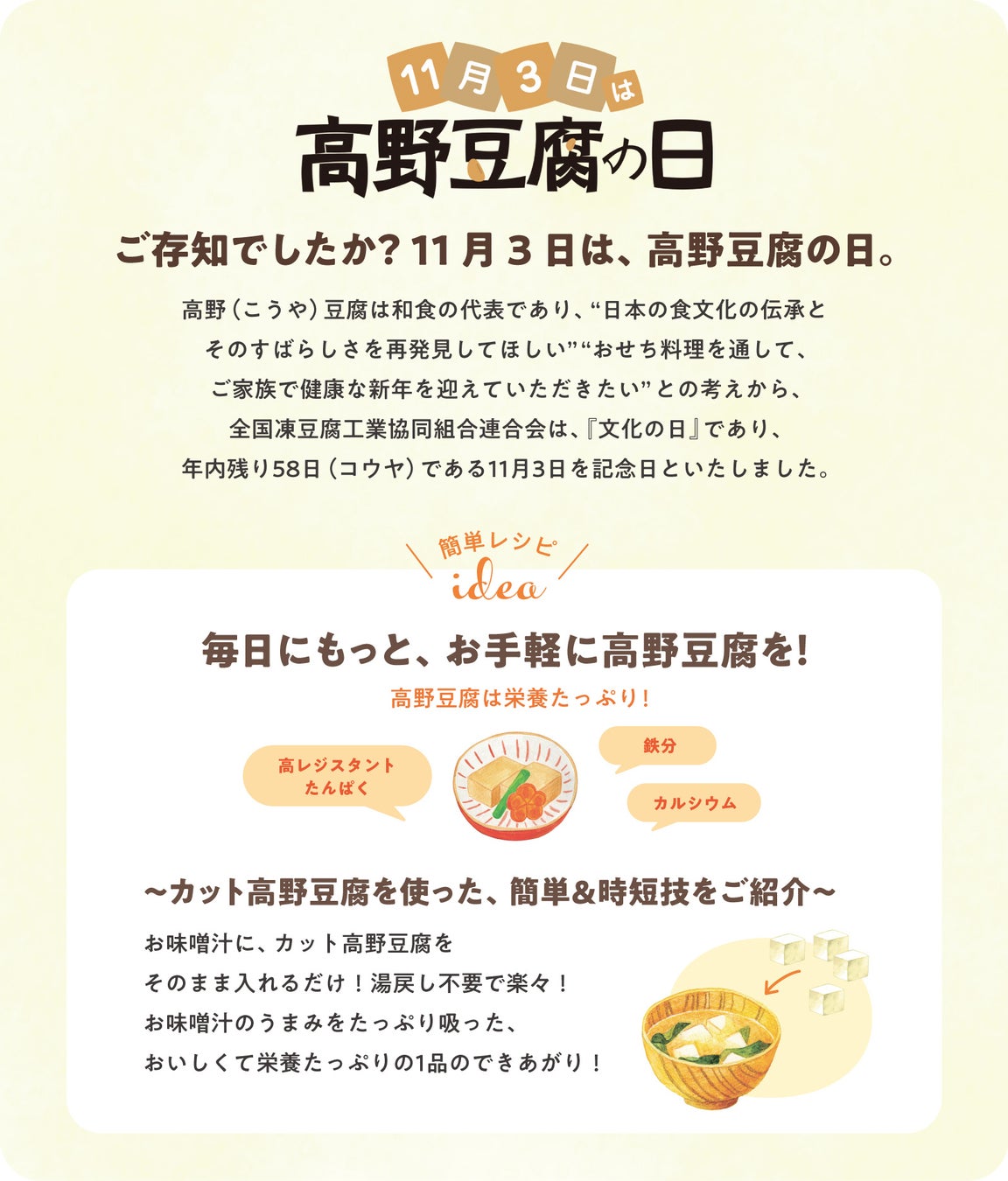 レシピや栄養コラムなどこうや豆腐の魅力がギュッと詰まったサイト:https://www.kouya-tofu.com/