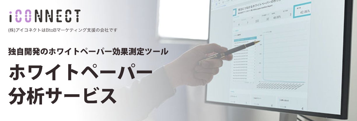 ▼ 株式会社 アイコネクト…BtoBマーケティングの支援事業とDX支援事業を手がける。マーケティング支援の一環として行ってきた、ホワイトペーパーの企画・制作・分析サービスの知見を活かして、「ホワイトペーパー分析サービス」の開発・提供を開始。