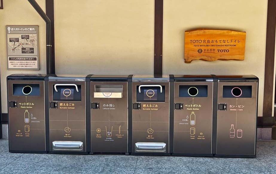 本モデル事業では、多くの観光客が往来する宮島口旅客ターミナル施設と、島内の表参道商店街(TOTO宮島おもてなしトイレ)にIoTスマートごみ箱「SmaGO」を設置します。TOTO宮島おもてなしトイレには、国内では初めての設置となる「SmaGO飲み残し専用BOX」が設置されます。