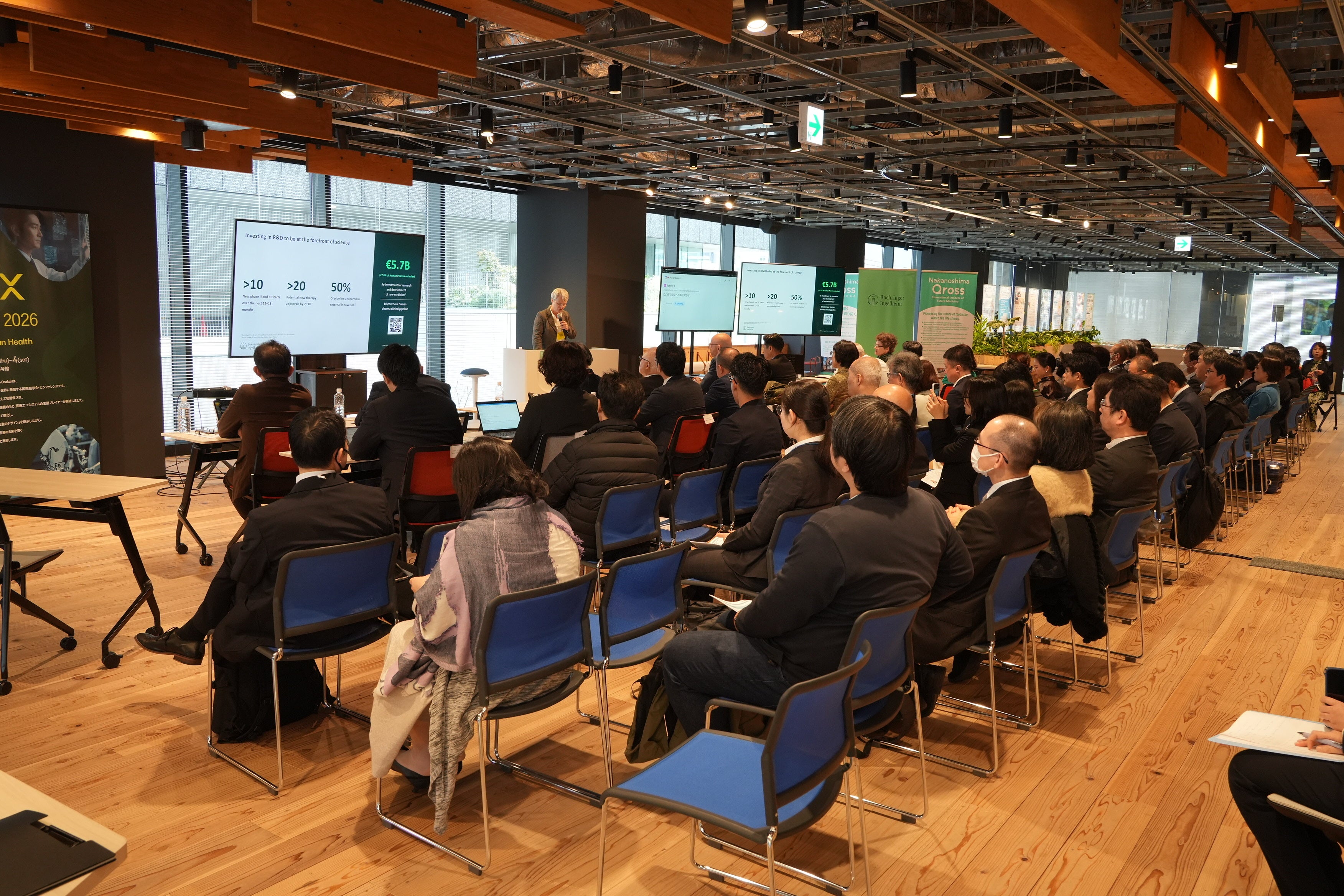 本イベントの公開セッションでは、国内外の創薬エコシステムに関する最新動向について有識者による講演が行われたほか、ベーリンガーインゲルハイムによるパートナリング戦略の紹介や、日本発のシーズをグローバル展開していくことへの期待について共有しました。非公開セッションには、免疫/炎症/線維化疾患、子宮内膜症、神経変性疾患、網膜疾患において画期的な新薬候補となる医薬品を開発するスタートアップや起業家を事前に募集し、日本を含むアジアで研究開発を行う、または研究開発を予定するアカデミア、スタートアップ、バイオテック企業14組織が参加しました。同セッションの中では、これらの企業とベーリンガーインゲルハイムのサイエンス・ビジネスリーダーとの個別面談(1on1)が行われ、参加企業が有する有望なシーズを実用化するために必要な取り組みや、ベーリンガーインゲルハイムとの協業の可能性について相互に議論する機会となりました。