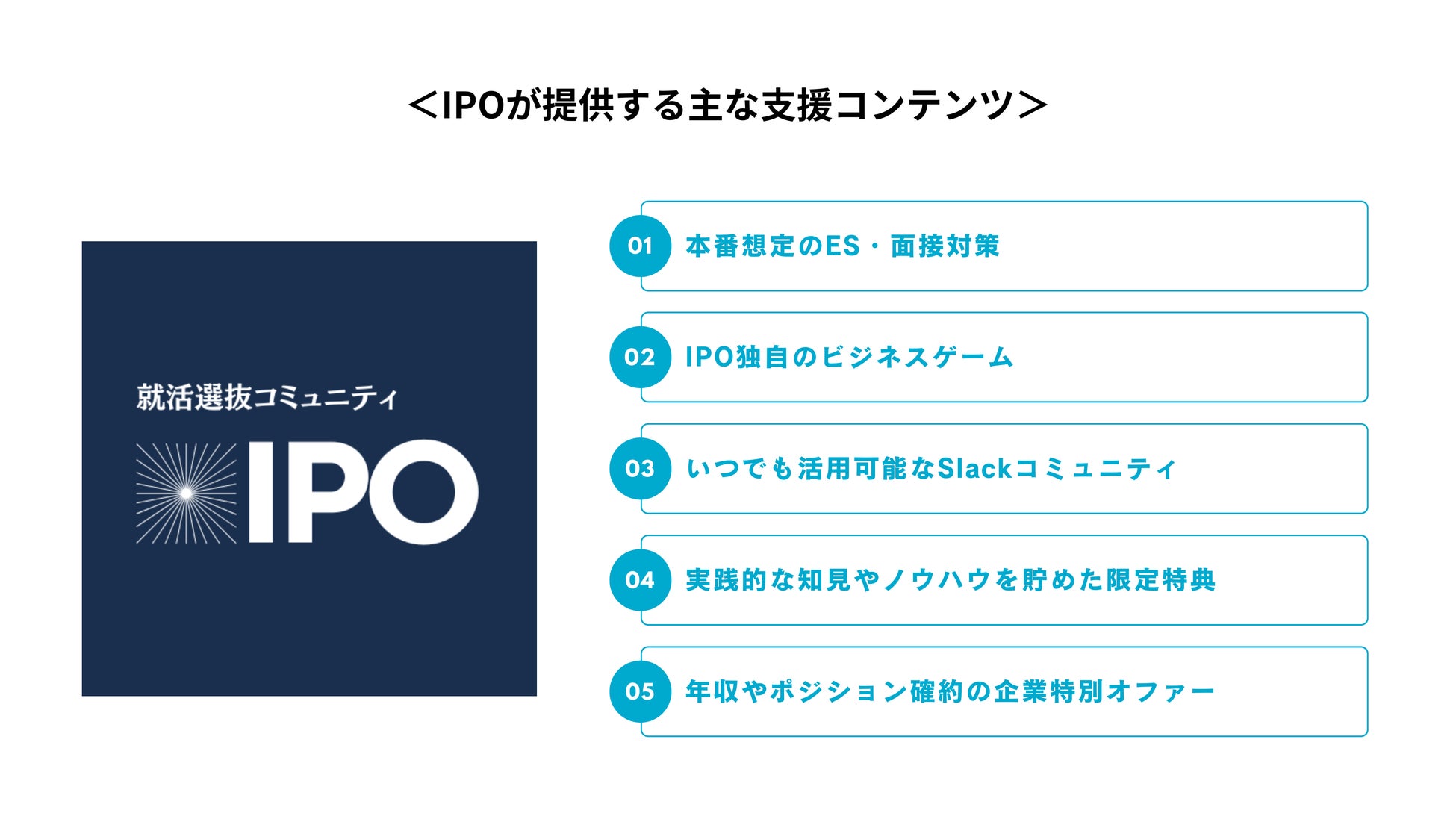 <IPOが提供する主な支援コンテンツ>(すべて無料で利用可能)