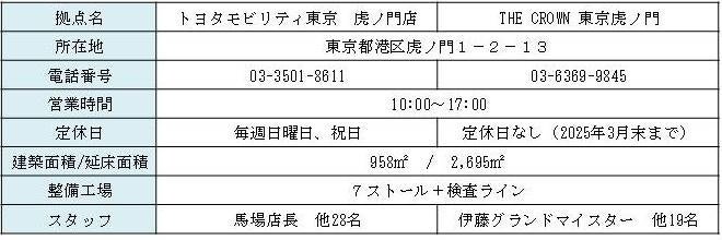 トヨタモビリティ東京株式会社(社長 佐藤 康彦)は東京都港区に「THE CROWN 東京虎ノ門」と「虎ノ門店」をオープンする。