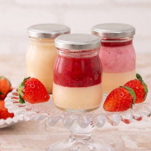 いちごぷりん・いちごミルクぷりん・レアチーズの3点セット。一般的な苺の平均糖度が10℃前後に対して、はこだて恋いちごの糖度は15度とその甘さはお墨付き。日本で初めて食用イチゴの栽培が行われた”函館”で作られたブランドイチゴ