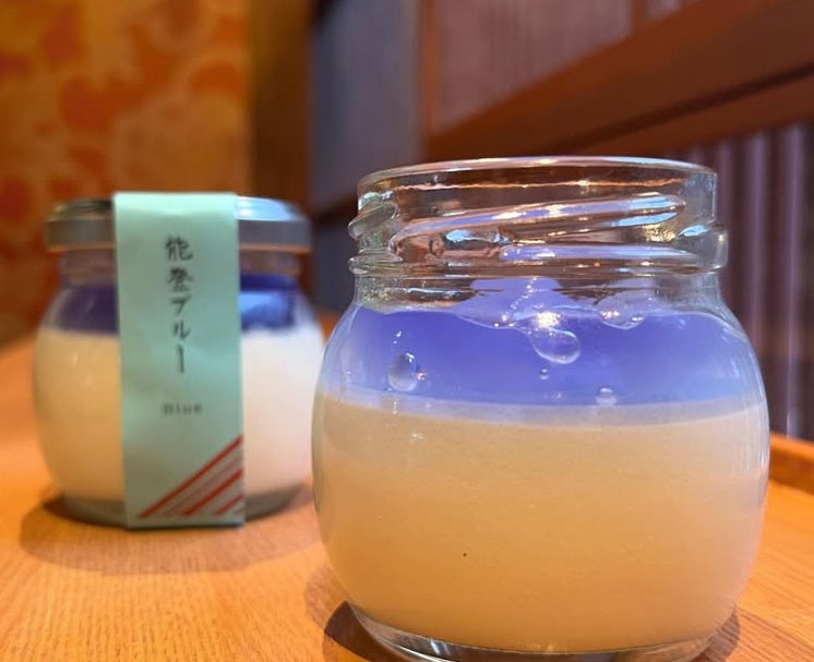 青い”能登の海”をイメージしたバタフライピーのゼリーが印象的、ほんのり塩味のベースプリンに、ジュレに入っているナタデココの歯ごたえがアクセントになってます。夏季限定で発売されていた商品になりますが、一早く特別に体験いただけます。