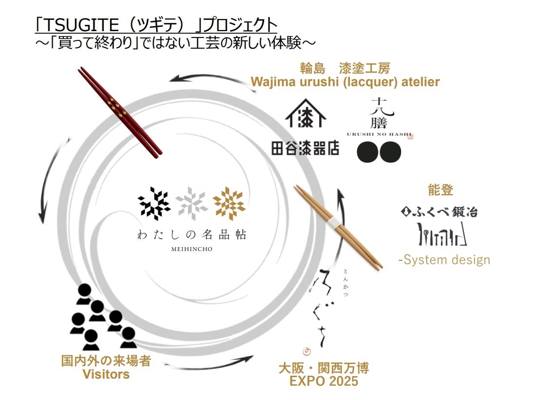 こうした考えのもと、当社は2025年大阪・関西万博に出展する人気料理店「とんかつ乃ぐち」(http://noguci.com/)のプロジェクトマネージャーとして参画し、食と工芸を融合させた新たなSDGs実践型プロジェクト「TSUGITE(ツギテ)」を始動します。