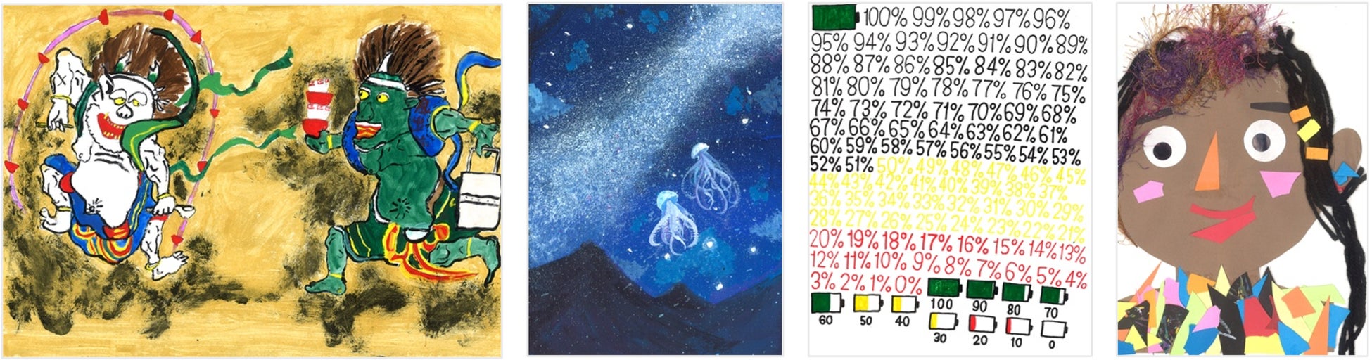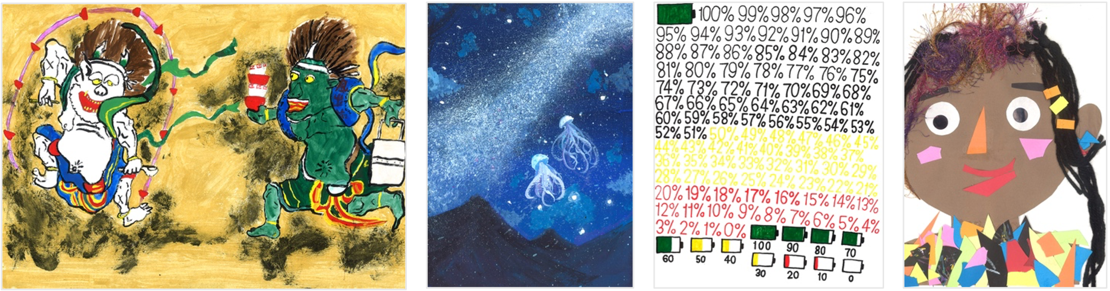 展示される作品の中には、障害のある子どもたちの作品も、そうでない子どもたちの作品も含まれています。